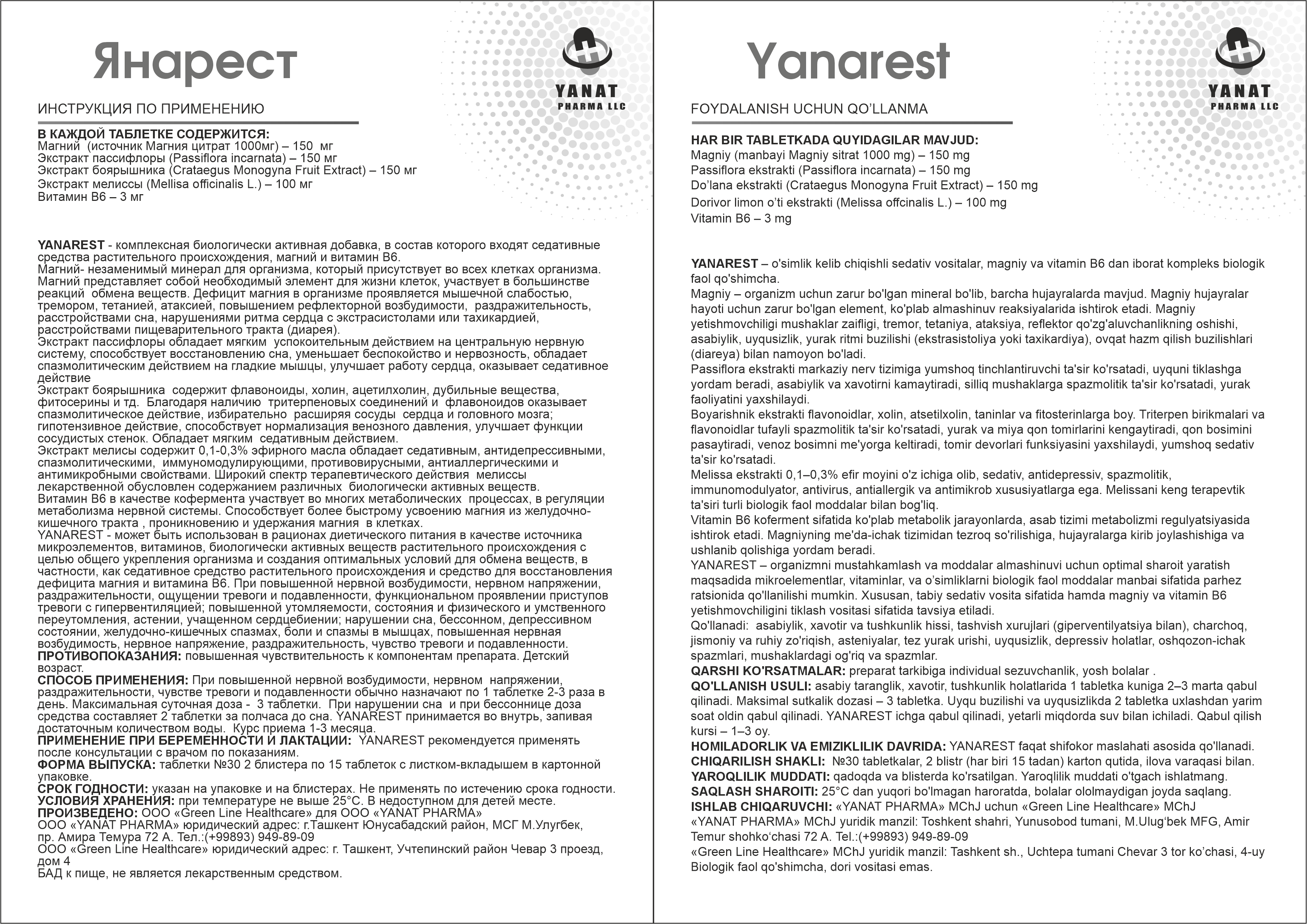 Фармацевтическая компания YANAT PHARMA разрабатывает эффективные, разнообразные комбинированные препараты предназначенные для профилактики и лечения различных заболеваний в области здравоохранения